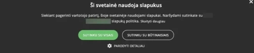 Taip pat sutikimo formoje nėra pateikiamos nuorodos į Slapukų ir (arba) Privatumo politiką. Tai reiškia, kad vartotojo „sutikimas“ šiuo atveju nelaikytinas informuotu. Vartotojas taip pat nėra informuojamas kur, kokiais tikslais jo duomenys bus naudojami.